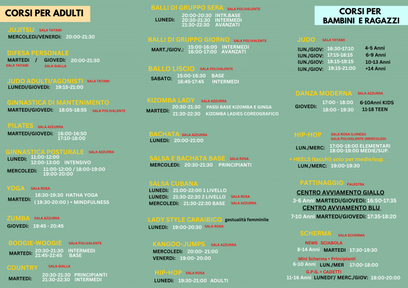 Tutte le attività dell'anno sportivo 2025/2026 che potrai trovare presso la nostra Polisportiva!